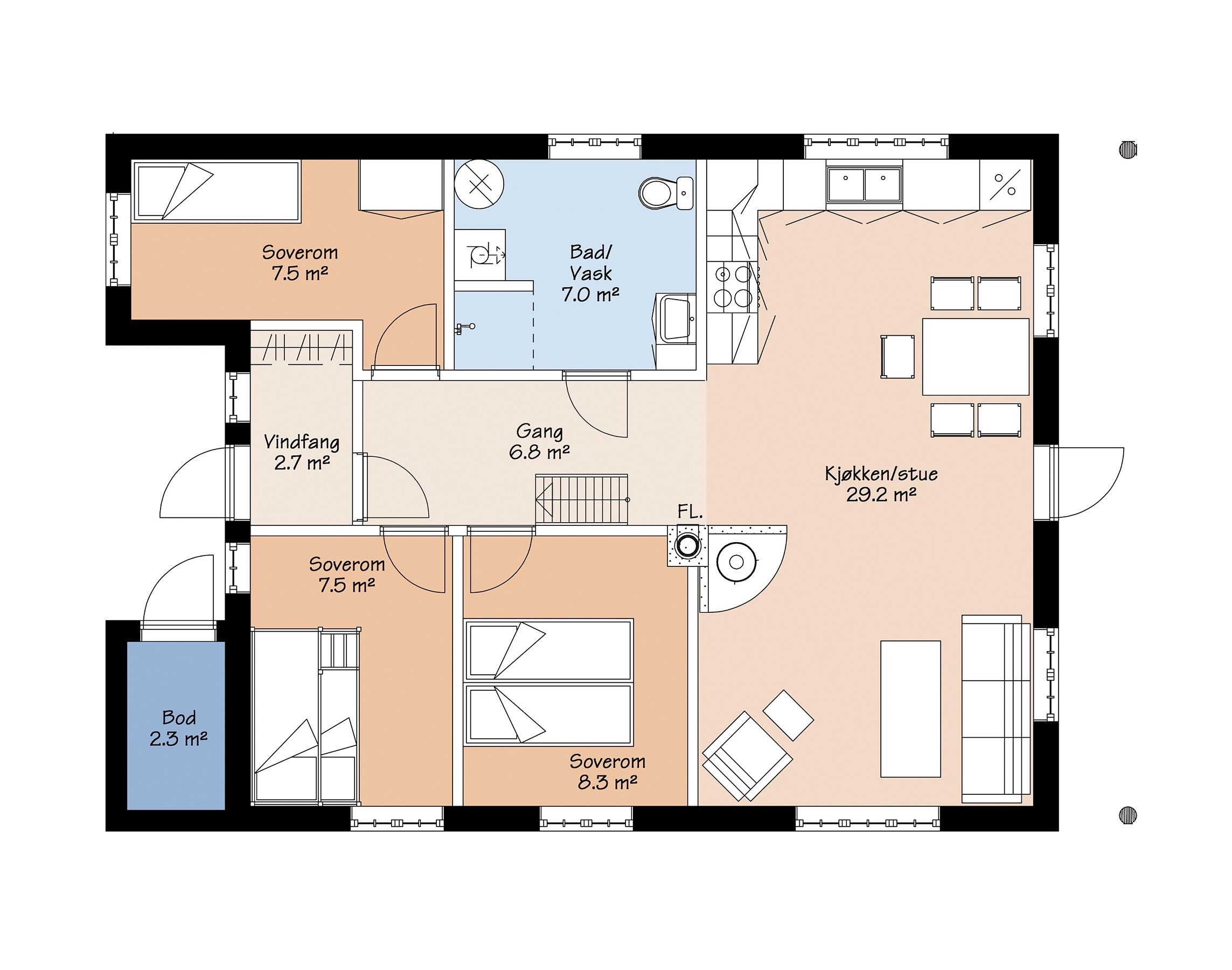 Bruksareal: 75,4 m²