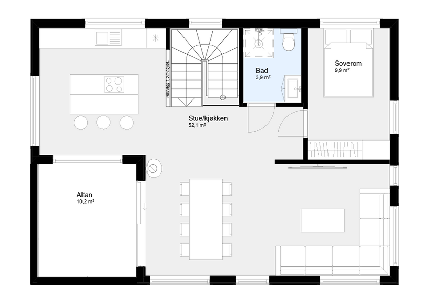 Bud er en familievennlig bolig med fire soverom og god plass til både hverdagsliv og overnattingsgjester. I tillegg til den åpne stue- og kjøkkenløsningen, får du en kjellerstue som gir ekstra fleksibilitet – perfekt for barna, ungdommen eller som hjemmekino.